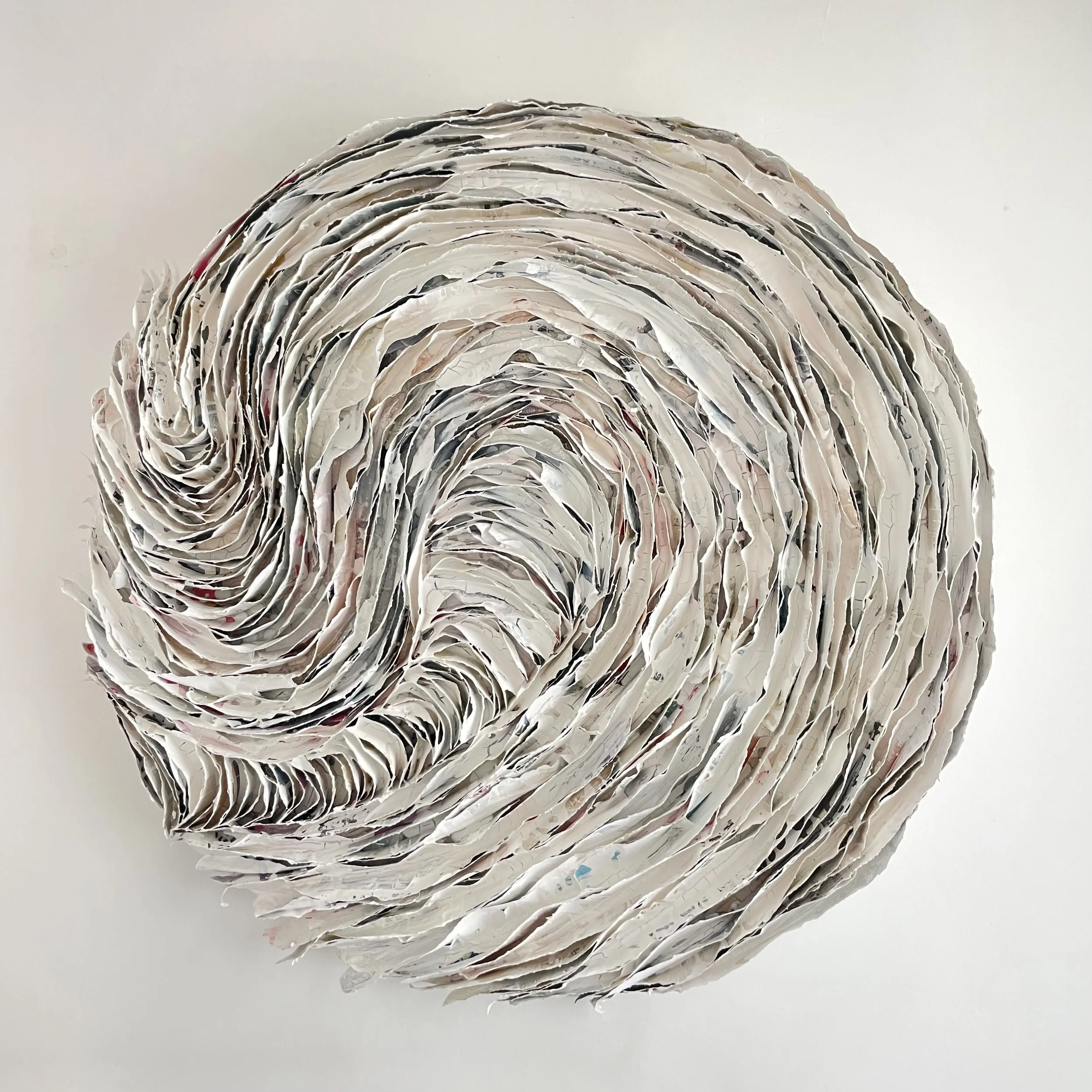 “3D thoughts about time, space and both our common and personal stories and what happens in between…”3D collage, ⌀:80cm. 2025. 2200€